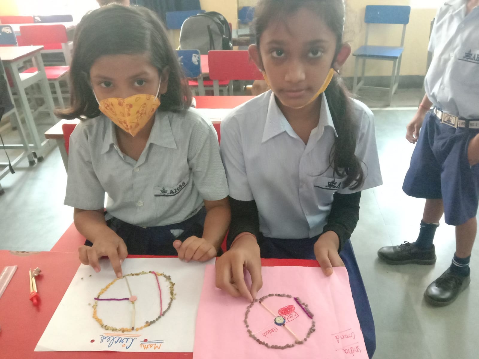 This fun Activity is all about learning the terms of Circle with the help of items like pulses, button, wool, match sticks .